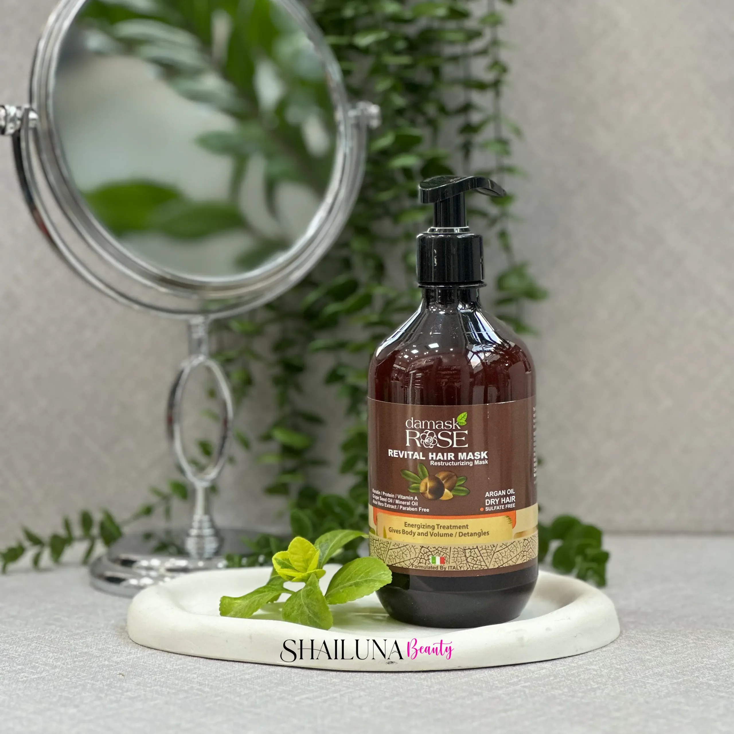 ماسک مو بدون آبکشی داماسک رز DAMASK ROSE مدل آرگان مخصوص موهای خشک – حجم 500 میلی لیتر
